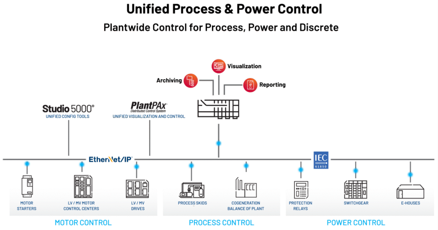 Tri Tech a déployé la solution unifiée de contrôle de puissance et de processus de Rockwell pour intégrer les centres de commande de moteurs, les variateurs de fréquence, les modules d'E/S et les passerelles de processus au sein d'un réseau unique. Cette innovation a marqué la première unification du contrôle de processus, du contrôle de sécurité, de la gestion de l'énergie et des systèmes électriques au sein d'une architecture unique. La solution a permis trois avancées majeures :